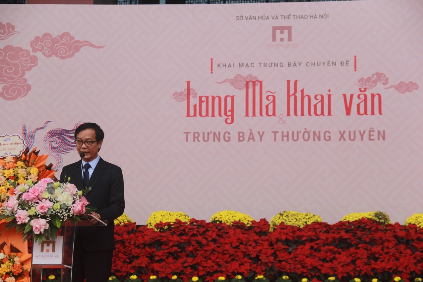 Sự kiện thường niên của Bảo tàng nói chung là sự quy tụ tiếp nối năm này qua năm khác diễn ra rất sâu đậm trong sự kiện Văn hóa, lịch sử và những hiện vật có giá trị lịch sử trường tồn. Hôm nay là ngày đặc biệt của bảo tàng khi diễn ra Lễ khai mạc trưng bày Long Mã Khai Văn trưng bày thường xuyên của Bảo tàng”, ông Nguyễn Tiến Đà phát biểu tại sự kiện.