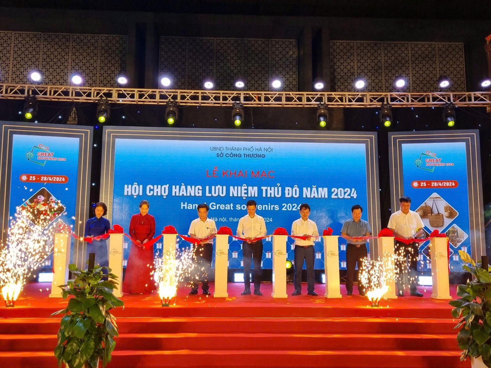 Chủ tịch Hiệp hội Thủ công mỹ nghệ và làng nghề HN Hà Thị Vinh cắt băng khai mạc Hội chợ hàng lưu niệm thủ đô năm 2024