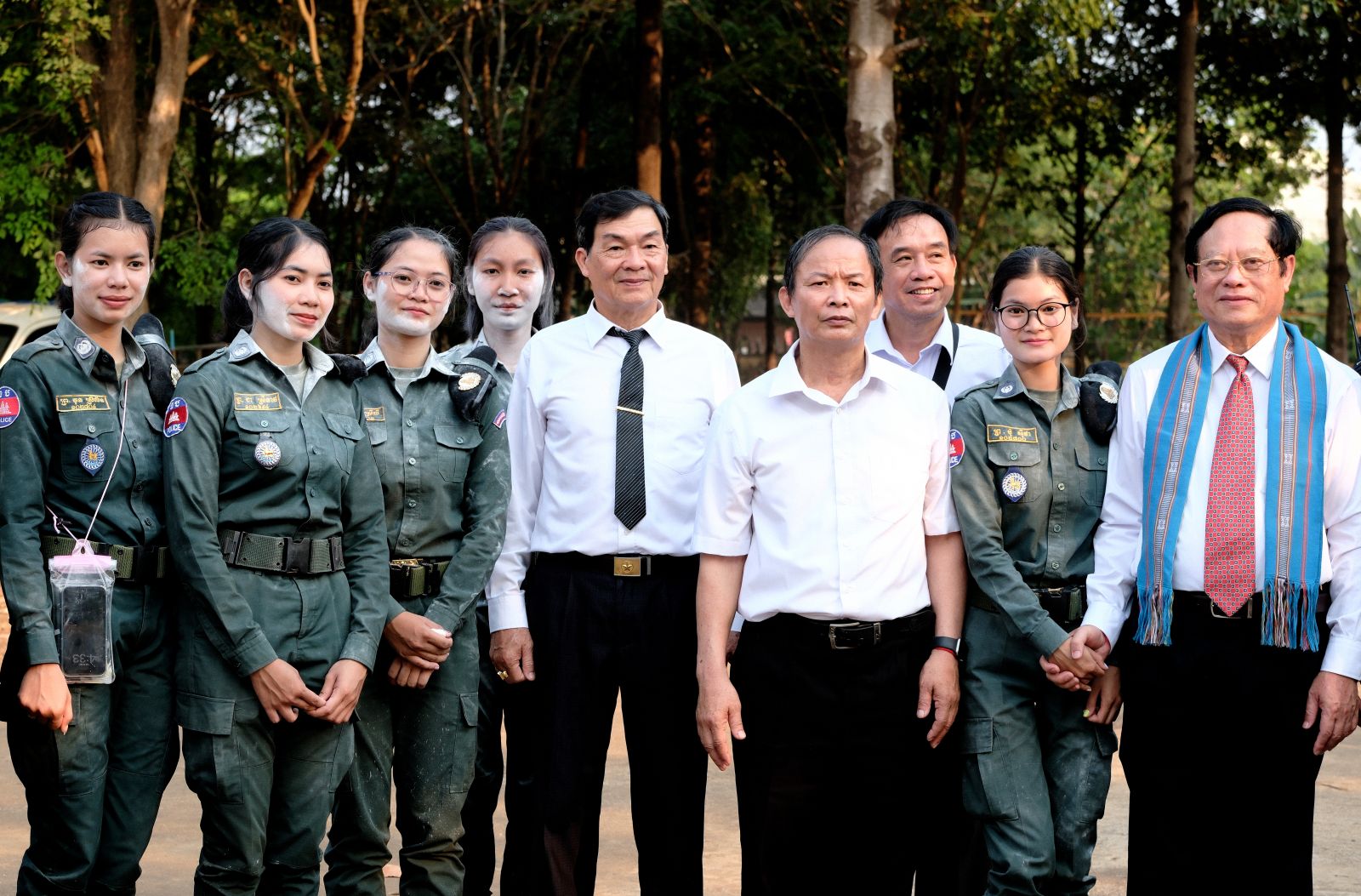 Chụp ảnh lưu niệm sau khi viếng hương hoa các Liệt sỹ Quân tình nguyện Việt Nam hy sinh ở Campuchia