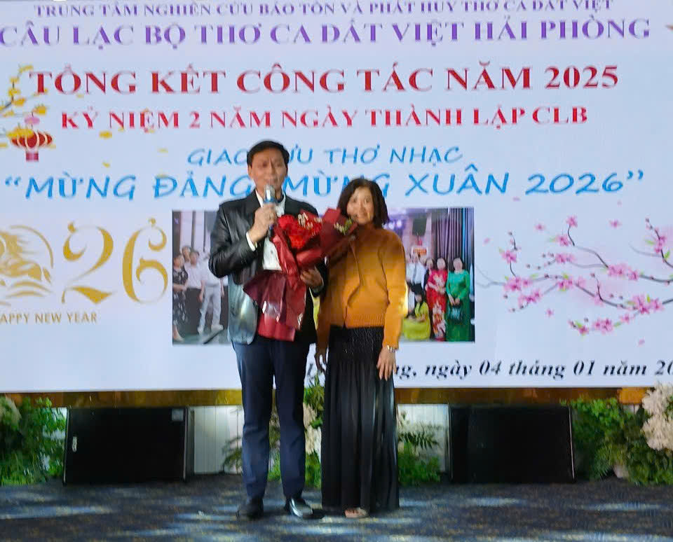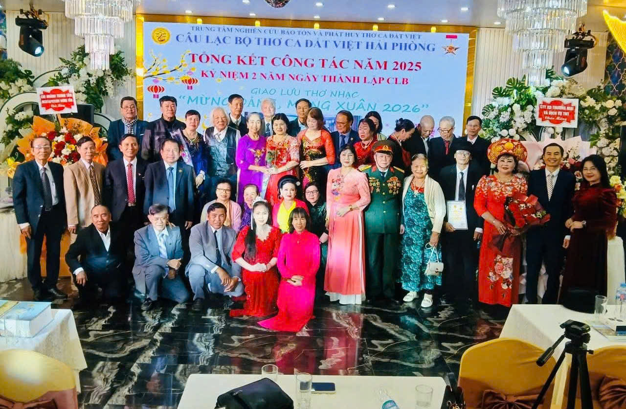 Sáng ngày 4/01/2026, tại Nhà hàng Bia Tây Âu (Hải Phòng), Câu lạc bộ Thơ ca Đất Việt Hải Phòng đã long trọng tổ chức Hội nghị Tổng kết công tác năm 2025, kết hợp Kỷ niệm 2 năm ngày thành lập CLB. Sự kiện diễn ra trong không khí trang trọng, ấm áp nghĩa tình, là dịp nhìn lại một chặng đường hoạt động nhiều nỗ lực, sáng tạo và gắn bó của những người yêu thơ, yêu nghệ thuật trên thành phố Cảng.