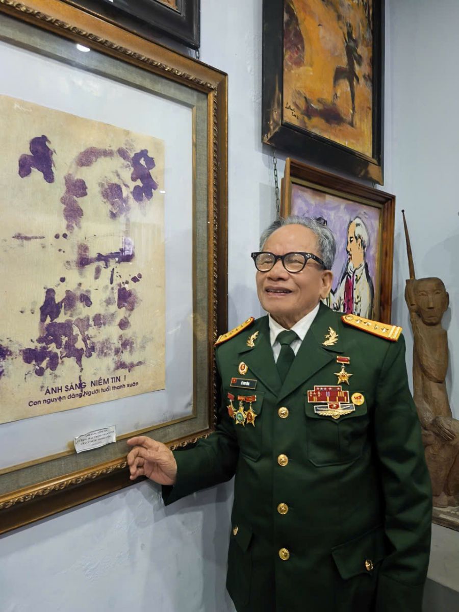 Trong khoảnh khắc sinh tử, khi ý thức rõ mình có thể không qua khỏi, người chiến sĩ – họa sĩ vẫn giữ được sự tỉnh táo hiếm có. Ông đã lấy chính máu của mình làm màu vẽ, vẽ chân dung Chủ tịch Hồ Chí Minh, vẽ lá cờ Tổ quốc, lá cờ Đảng, và ghi đậm dòng chữ: “Ánh sáng niềm tin – Con nguyện dâng Người tuổi Thanh Xuân.”