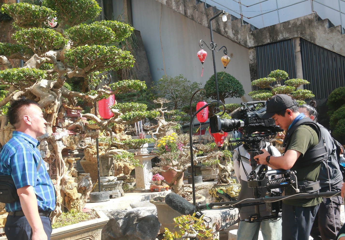 Đam mê ấy không chỉ dừng lại ở việc chăm sóc từng gốc cây, mà còn lan tỏa mạnh mẽ đến mức thu hút sự chú ý của bạn bè quốc tế. Sau một thời gian, anh Chung nhận được lời mời từ Đài truyền hình NHK của Nhật Bản, mong muốn ghi hình tại vườn cây Hương Sắc Việt để quảng bá hình ảnh nghệ thuật cây cảnh Việt Nam ra toàn thế giới. Buổi ghi hình diễn ra trong không khí nghiêm túc, chuyên nghiệp và kết thúc với kết quả tốt đẹp, mở ra hy vọng về sự lan tỏa rộng hơn của nghệ thuật bonsai Việt.