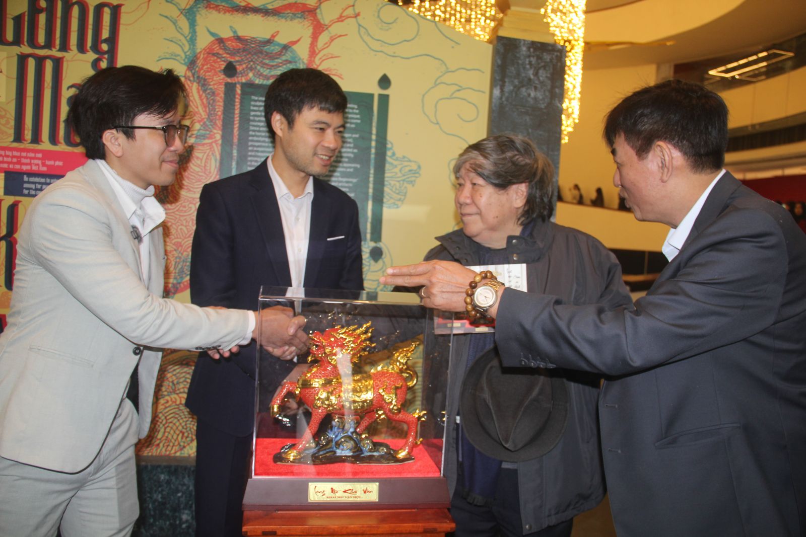 Long Mã là linh vật cầu may mắn, đem lại sự tốt lành cho người dân, hình tượng Ngựa là biểu tượng của đại diện 12 con Giáp cầu mong cho sự may mắn, hạnh phúc và trường tồn dân tộc, thể hiện sự phát triển và vươn mình của Dân tộc theo chủ trương của Nhà nước chúng ta đối với sự tăng trưởng GDP hai con số năm 2026, sự kết hợp tất cả nguồn lực để Đất nước phát triển ngày càng lớn mạnh, ngày càng thịnh vượng”, Nghệ nhân Nguyễn Huy Hoàng là tác giả của sản phẩm Long Mã đại diện Công ty Gốm Nam Việt chia sẻ, trải lòng và tâm sự với du khách thăm quan, cũng như các Phóng viên báo chí tác nghiệp tại sự kiện.