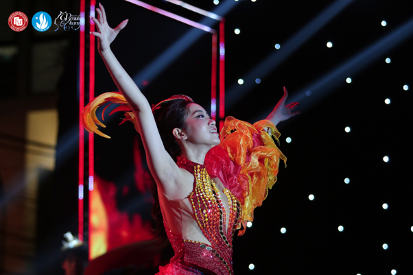 Không gian sân khấu trở nên cuốn hút và rực rỡ hơn trong phần trình diễn Trang phục Dạ hội, khi các thí sinh lần lượt tỏa sáng qua những bộ trang phục dạ hội thanh lịch, quý phái. Phần thi này không chỉ tôn vinh vẻ đẹp ngoại hình mà còn là nơi khẳng định phong cách, bản lĩnh và sự chín muồi của thí sinh trước hành trình hướng tới vương miện.