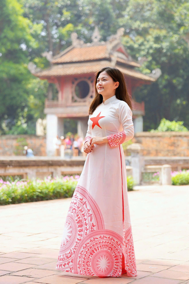 Cô giáo Lê Thị Quỳnh Anh hiện đại, tự tin, duyên dáng trong tà áo dài.