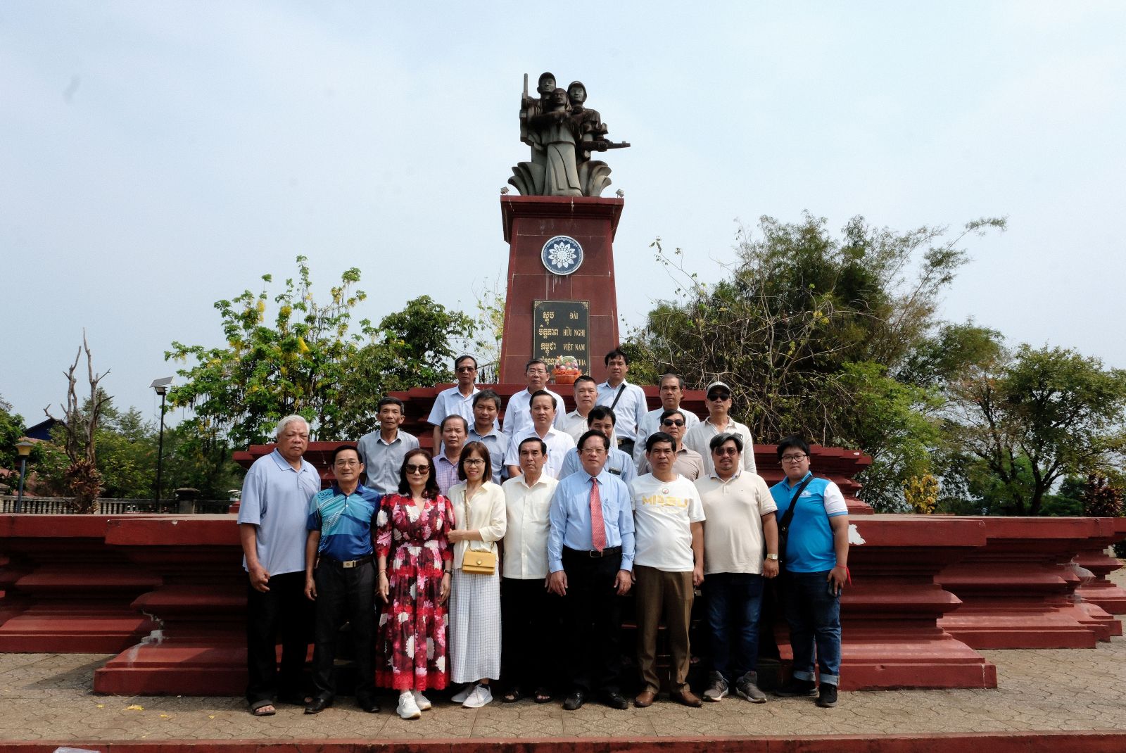 Chụp ảnh lưu niệm sau khi viếng hương hoa các Liệt sỹ Quân tình nguyện Việt Nam hy sinh ở Campuchia