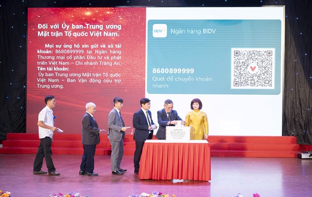 Tại chương trình, Đại diện Ban Tổ chức, các lãnh đạo tham dự và doanh nhân doanh nghiệp tham gia ủng hộ